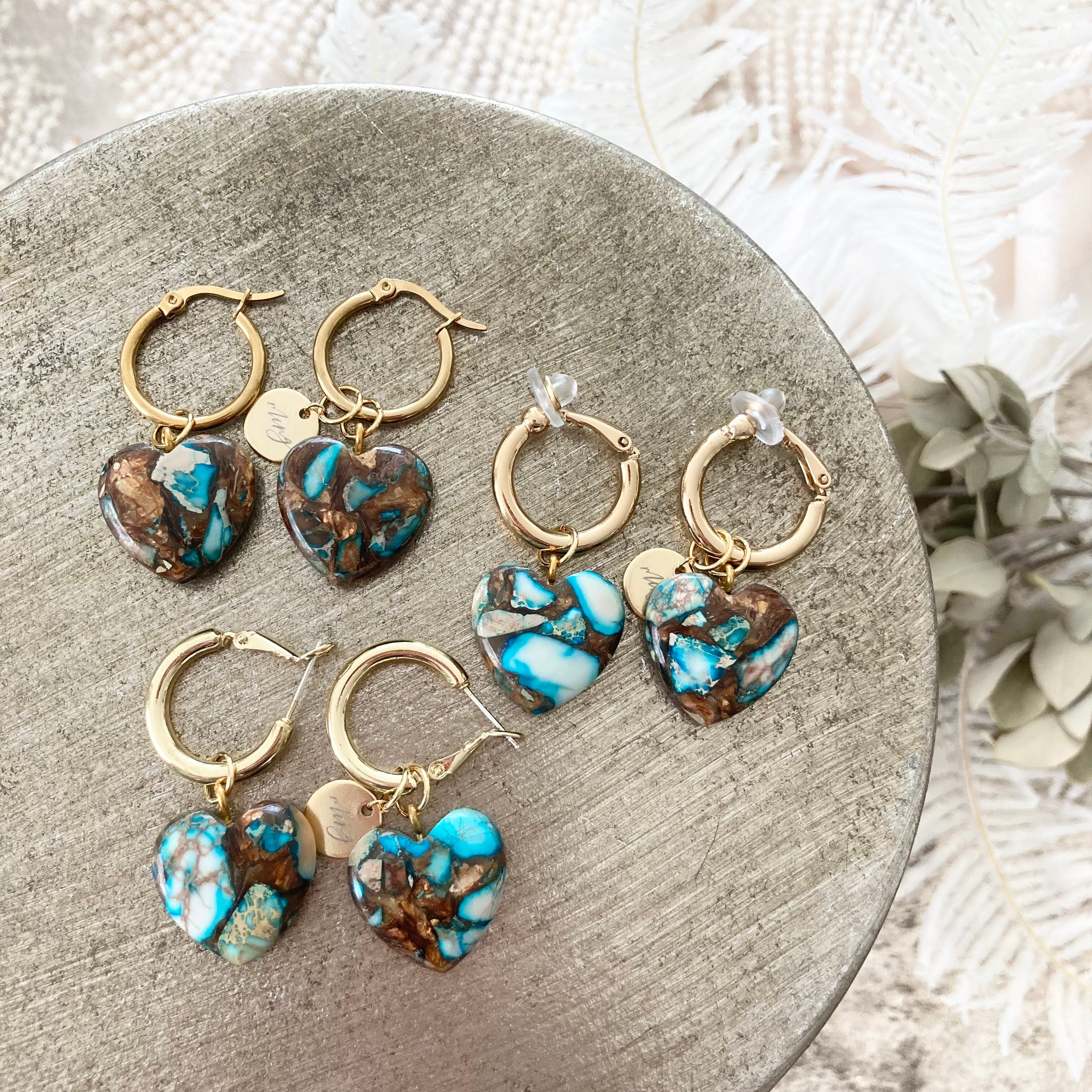 天然石とブロンズ石のインペリアルジャスパーのハートのチャームを使用したピアスとイヤリング♡