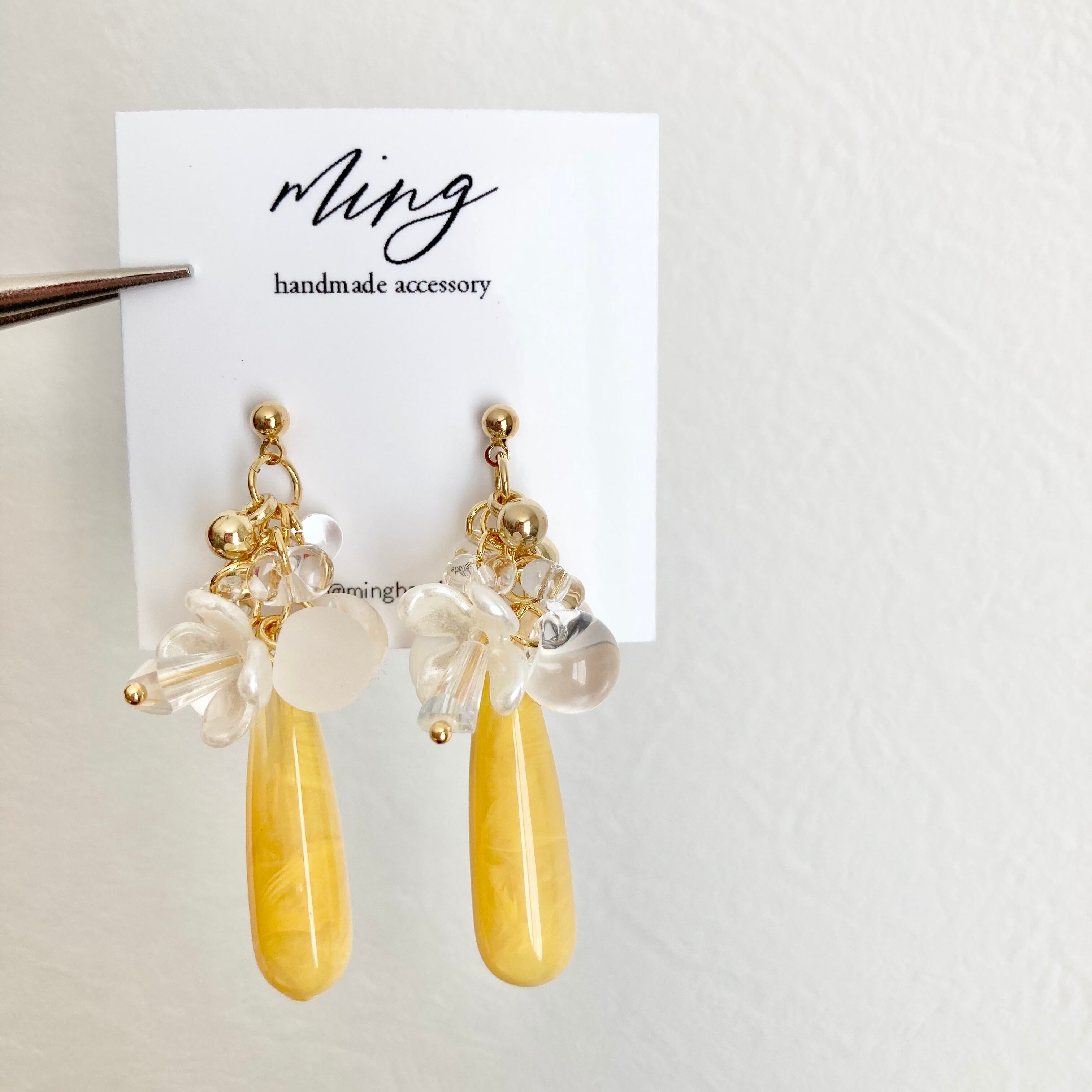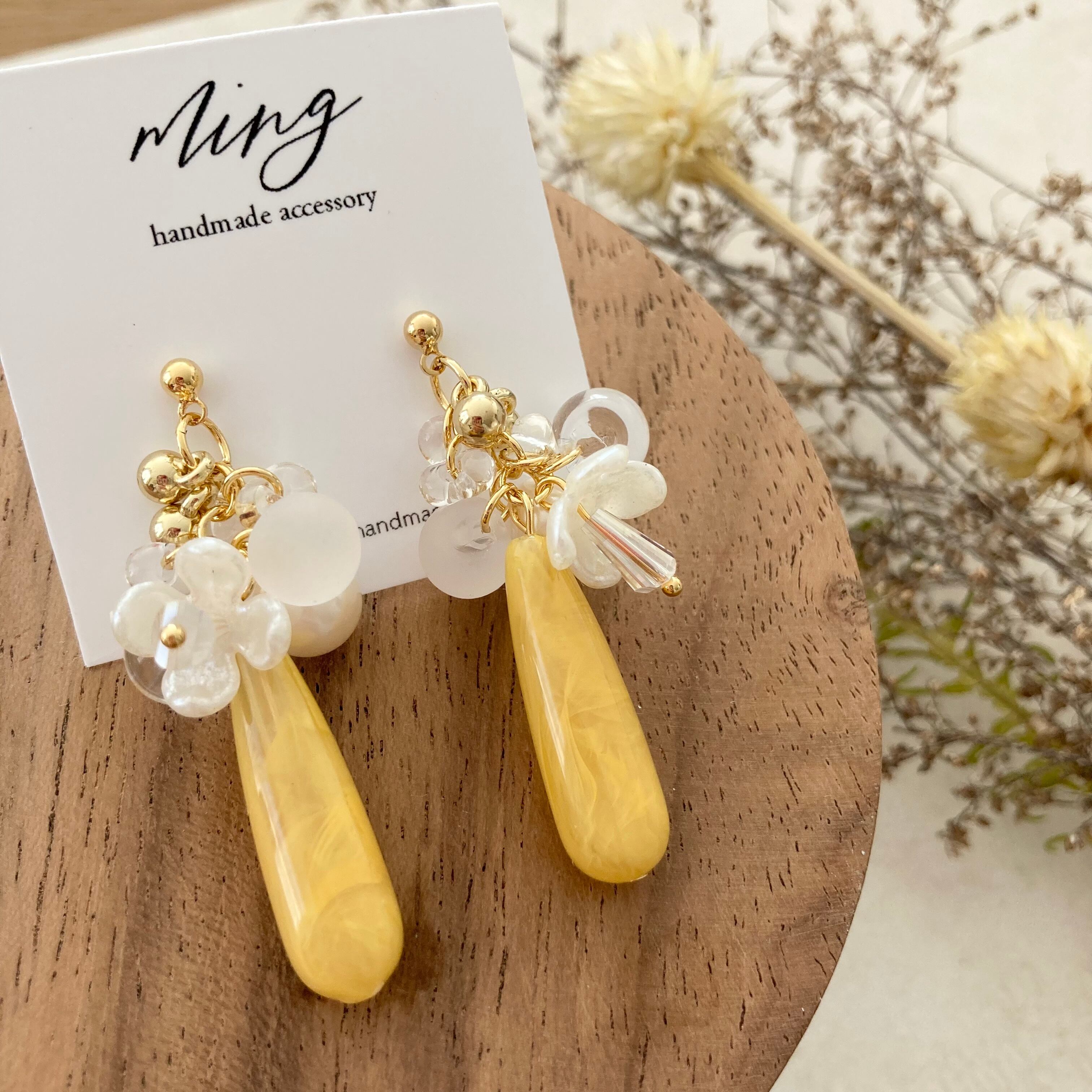 細めの雫型のビーズを使い、春らしく明るい色合いに♡